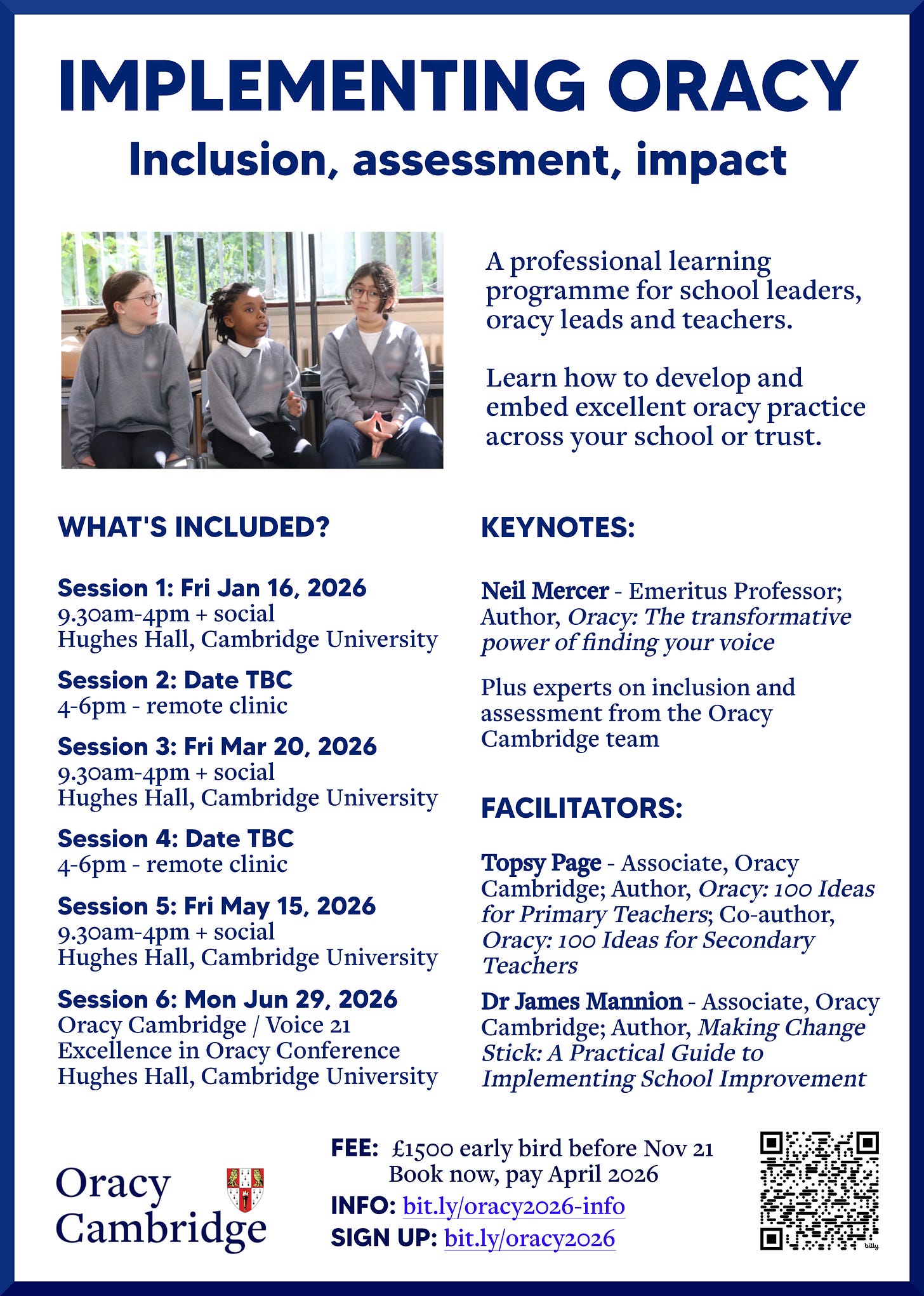 Would love to have a conversation with you or someone in the Oracy Cambridge team to explore any ways we might be able to support each other.
